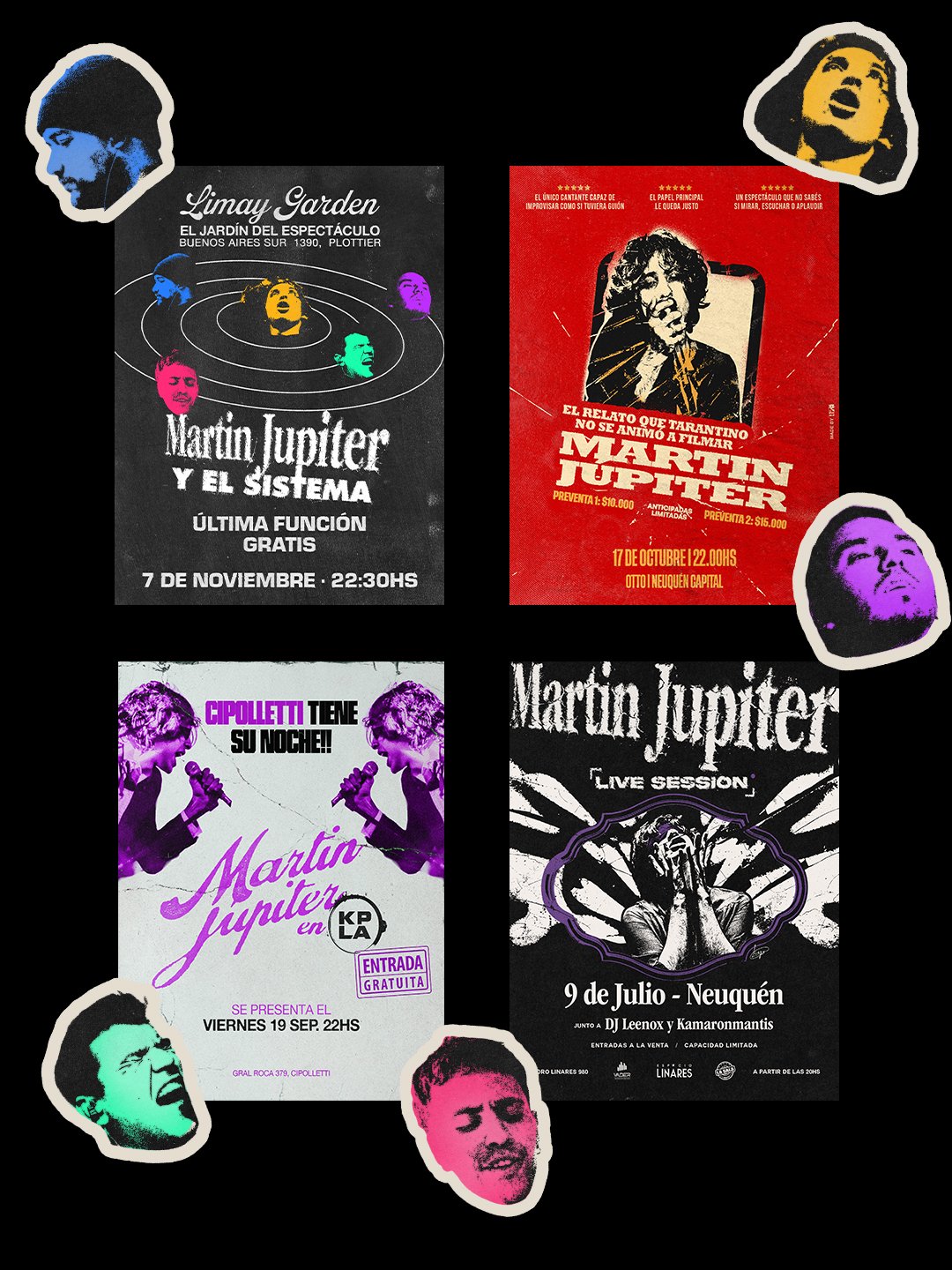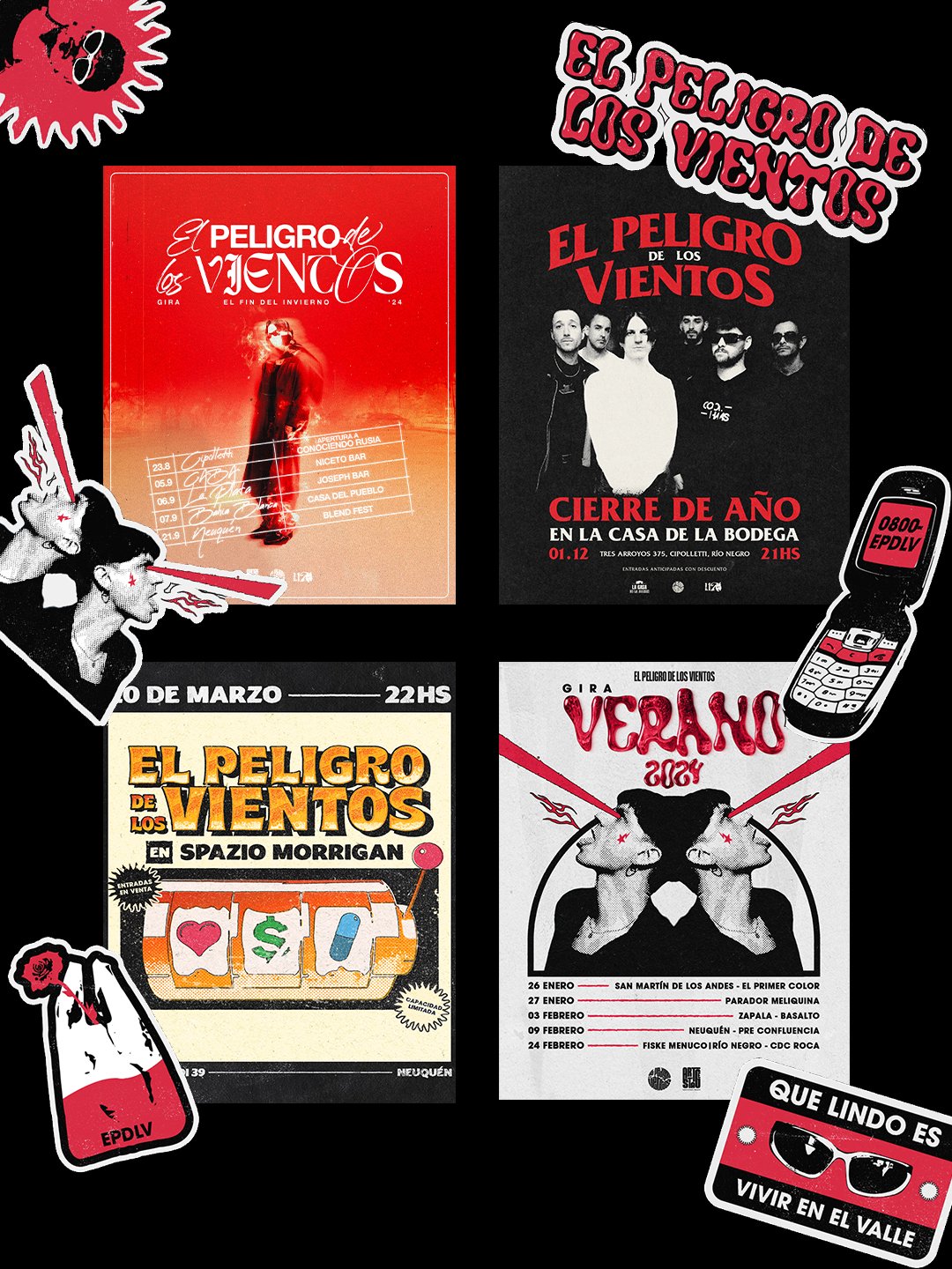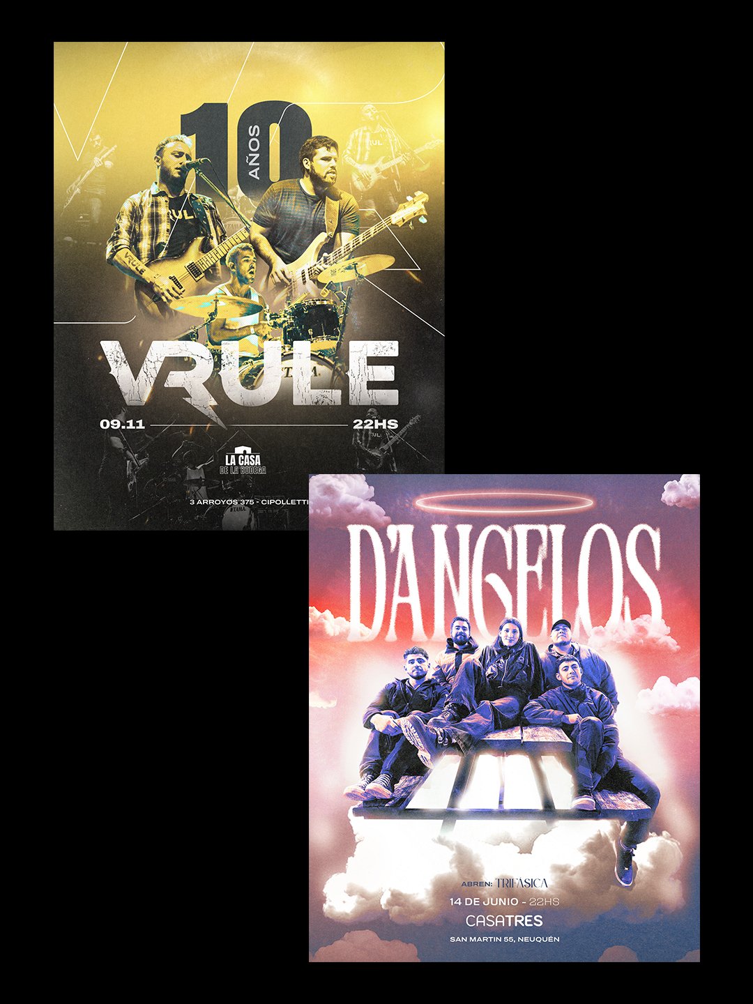 En los flyers, por ejemplo, me gusta imaginar que son afiches en blanco y negro, tipo fanzine, pegados en un poste de luz cerca del recital. Como si salieras del show todavía con el zumbido en los oídos y ya vieras el próximo toque anunciado en la pared.