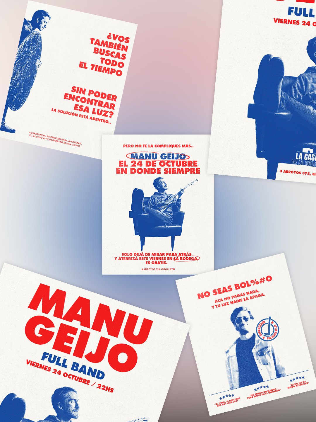Mi diseño nace de esa tensión: de que, de alguna manera si te hace reír, cumplí con un poco de ese objetivo. Hoy todos buscamos algo que nos entretenga, y aunque un flyer/un branding/ sea una imagen quieta, mi idea es que te genere esa sensación de cruzarte con un anuncio de marketing, como si el evento de la banda o del artista fuera en Las Vegas, viste? Esa vibra exagerada, medio parodia, pero atractiva.