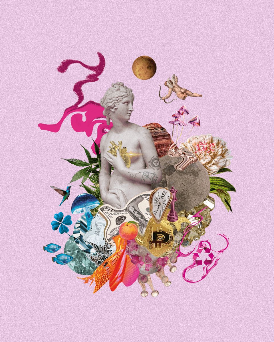 Para mí el collage es una representación de nuestra existencia contemporánea: somos simultáneamente humanos, naturales y cósmicos. Vivimos atravesados por lo digital y lo tecnológico, también buscamos placer en la naturaleza, en la belleza y en la conexión sensible.